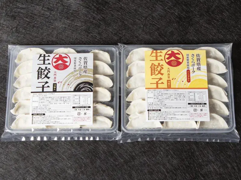 肥前さくらポーク使用、にんにくの芳醇な香りとしょうがの爽快な辛み。大門餃子の2大定番を味わえるお得なセットです