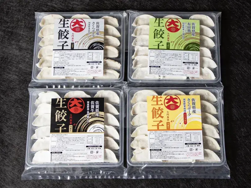 大門餃子の全4種を詰め合わせた完全版セット。佐賀のブランド肉の魅力をご家族みんなで楽しめる、満足度の高い逸品です
